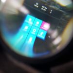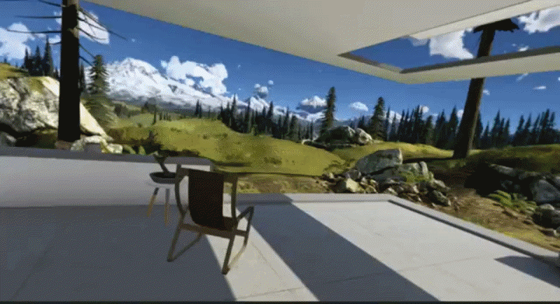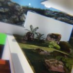 Эта часть гаджета оставила смешанные впечатления. С одной стороны, разрешение выше (1440×1440 пикселей против 1080×1200 у Vive), и это оказалось заметно; изображение стало чётче, пробелы между пикселями — меньше. Но подвела оптика, из-за которой к краю картинка размывается, и ощущается эффект бинокля, не дающий забыть, что между вами и виртуальным миром лежит внутреннее пространство очков. Вайс постарался снять картинку из очков, предупреждая, что фотографии не передадут сути: