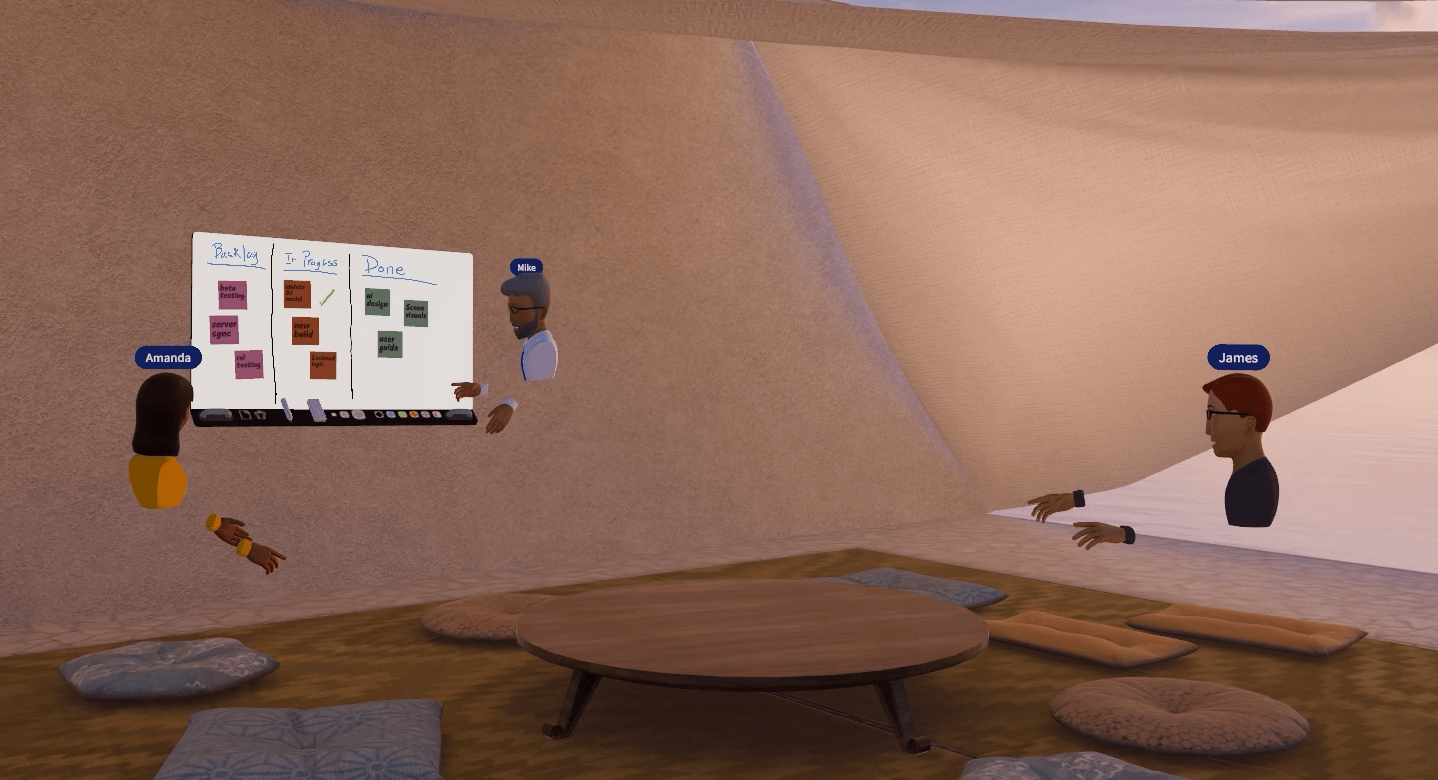 Виртуальные конференц-залы с оборудованием, таким как доски для заметок. MeetingRoom может похвастаться бесплатным тарифом на восемь человек с таймером встречи, чтобы участники не засиживались и не теряли времени зря. Участники могут работать как в очках, так и за мониторами, причём даже из macOS и iOS. По запросу можно получить корпоративный тариф с, теоретически, неограниченным числом участников, хотя это неплохо проверить на практике.