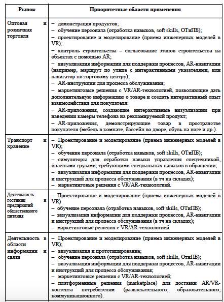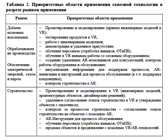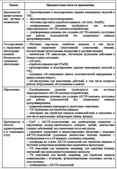Группа сквозных цифровых технологий (далее — СЦТ) в области нейротехнологий, дополненной и виртуальной реальности является базой для формирования рынка «Нейронет». Основное свойство «Нейронет» — принципиально более широкий спектр возможностей для взаимодействия человека с виртуальным миром.В соответствии с Планом мероприятий («дорожной картой») «Нейронет» Национальной технологической инициативы, одобренной Президиумом Совета при Президенте Российской Федерации по модернизации экономики и инновационному развитию России 24.06.2016, Протокол No3, среди ключевых сегментов рынка «Нейронет» выделены в том числе «НейроМедтехника» и «НейроОбразование».На основании Указа «О национальных целях и стратегических задачах развития Российской Федерации на период до 2024 года» можно выделить следующие элементы технологического лидерства, на которые может повлиять развитие технологий виртуальной и дополненной реальности: