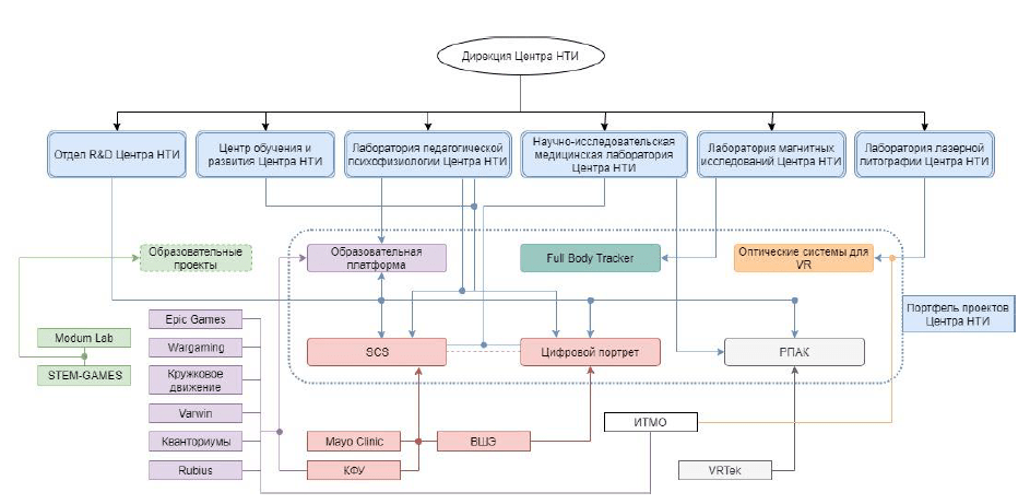 Стратегические партнёрства с крупными технологическими вендорами — HTC, Wargaming, Epic Games, Teslasuit, HP, в рамках которых планируется привлечение инвестиций в проекты Центра НТИ, софинансирование его деятельности.