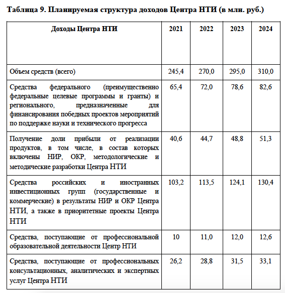 Для облегчения данного процесса предусмотрено создание так называемых малых инновационных предприятий. Выход Центра НТИ на устойчивую финансовую модель возможен при использовании подобных адекватных финансовых инструментов.