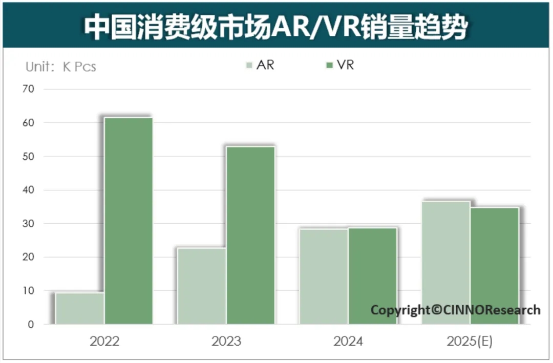 Для 2025 года CINNO Research дала оптимистичный прогноз: благодаря участию в рынке больших игроков в таких отраслях, как киберспорт и мобильные телефоны, развитию национальной политики субсидирования и активному проникновению зарубежного контента китайский рынок потребительского иммерсивного оборудования должен вырасти на 25%.