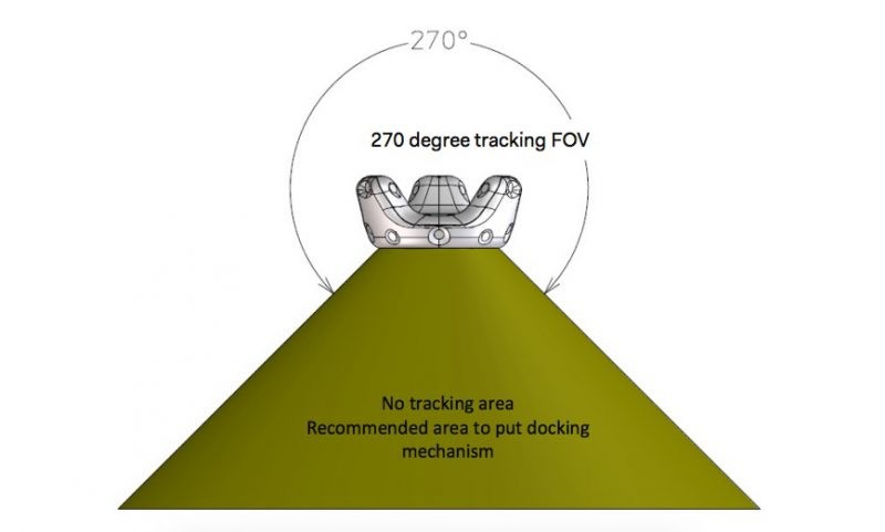 Оптическая система трекера отслеживает объекты в поле обзора, равном 270 градусам. Необходимо учитывать, что аксессуар может блокировать обзор деталями своей конструкции.