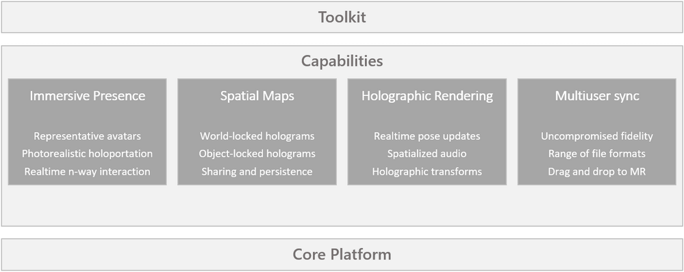 Mesh решает за разработчиков некоторые технические проблемы, такие как стабильность «голограмм» в пространстве, поддержка разных файловых форматов и синхронизация географически распределённых сессий. Вот ключевые компоненты платформы: