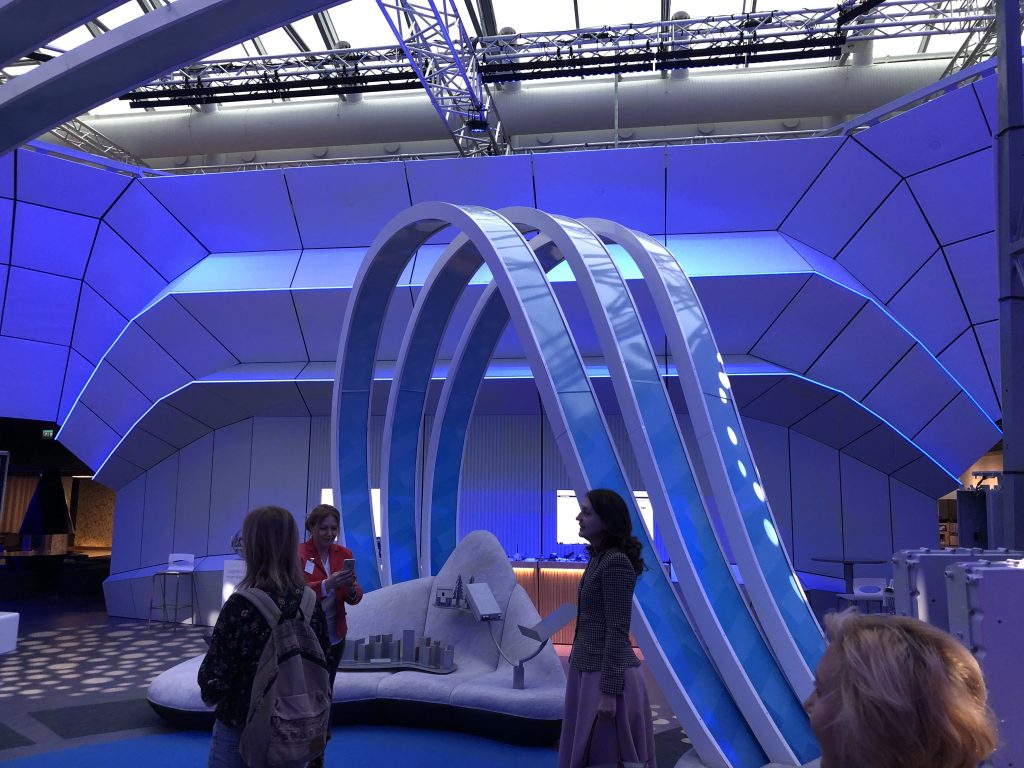 Максимальное погружения за минимальное время. Это выставка достижений — современных, на острие прогресса, и исторических, переговорные комнаты, а также зал для презентаций, где представители Nokia рассказали о своём видении мира со связью пятого поколения.