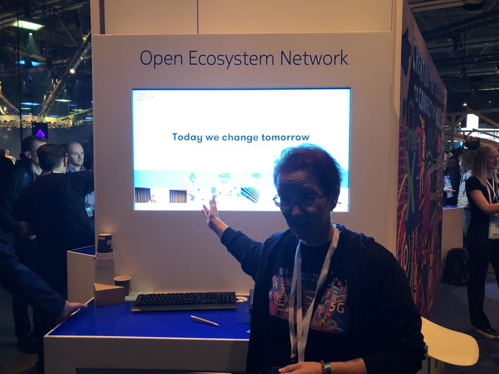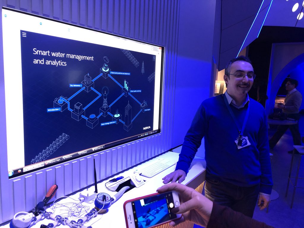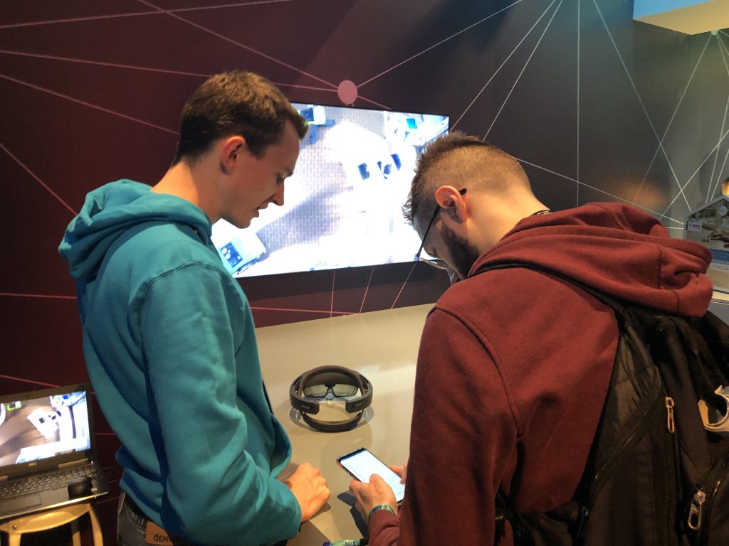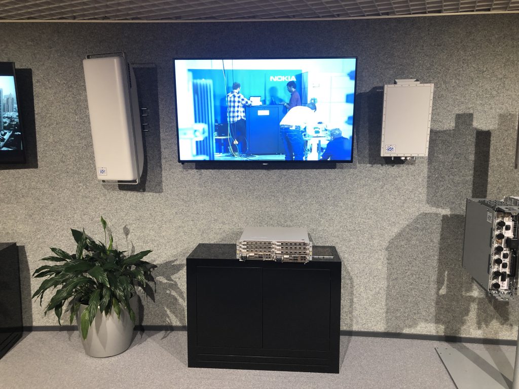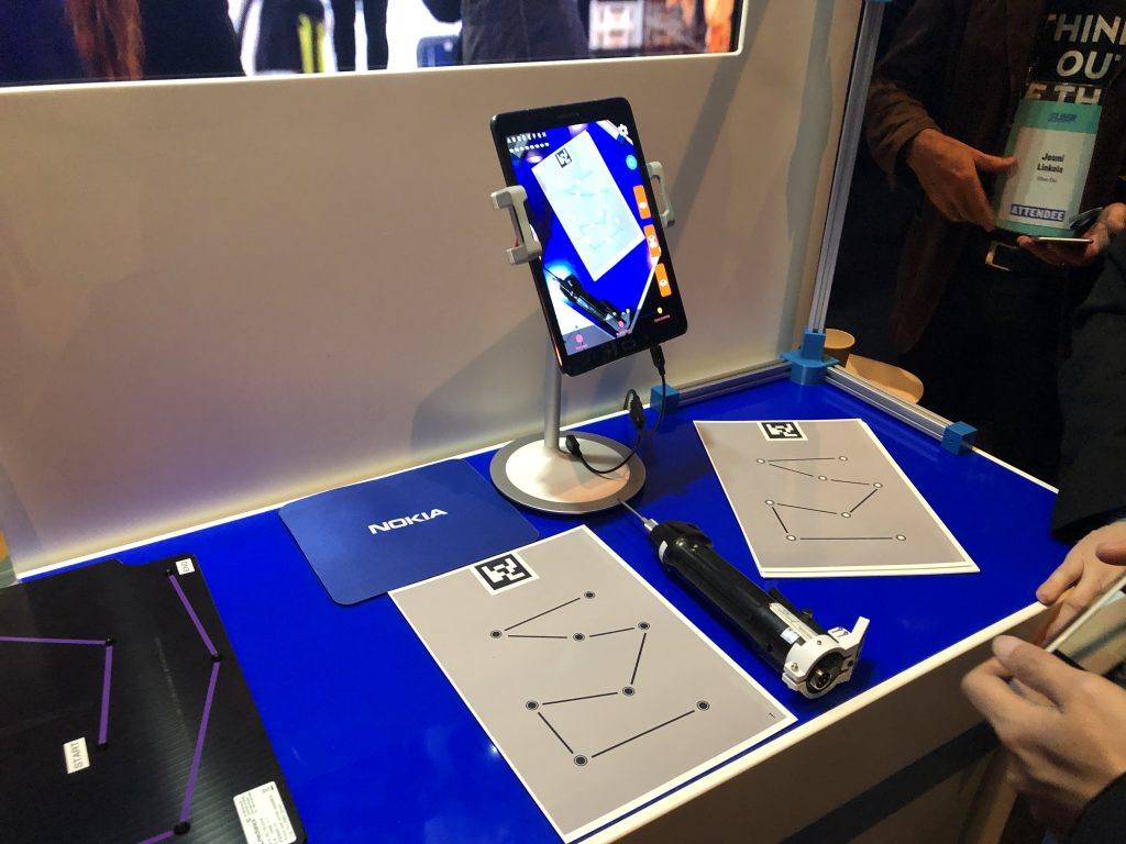 Почти у входа, в очень удачном месте рядом с Microsoft нас встретила Nokia со стендом 5G и дополненной реальностью, которую вы видели на видео.