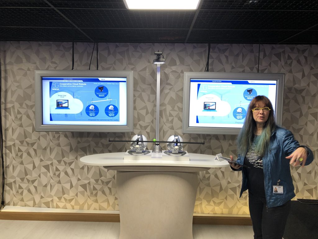 В Nokia есть небольшой отдел Digital Twin, в котором инженеры исследуют возможности виртуальной реальности для совместной удалённой работы. Название отдел получил из-за главного направления деятельности: создания цифровых копий реальных помещений со всем инструментарием обучения и обмена опытом. 5G помогает собирать информацию о ВР-технологии, тестировать терминальные устройства, разрабатывать симуляции.