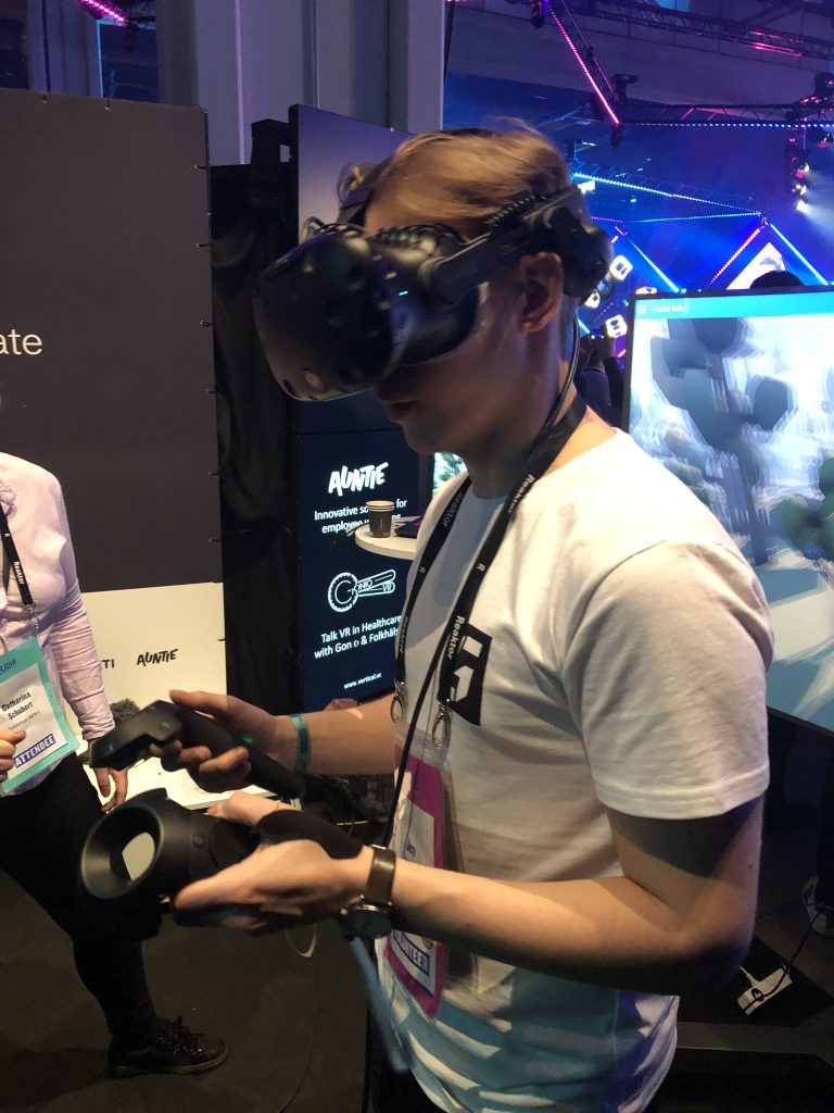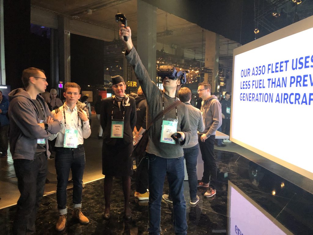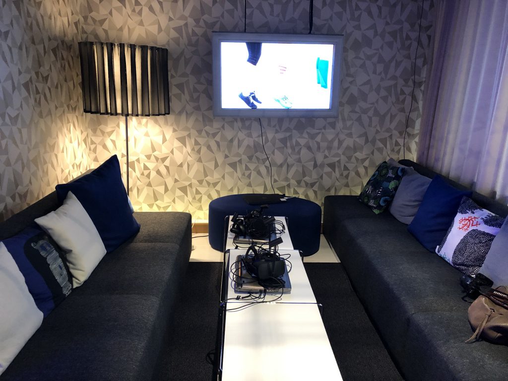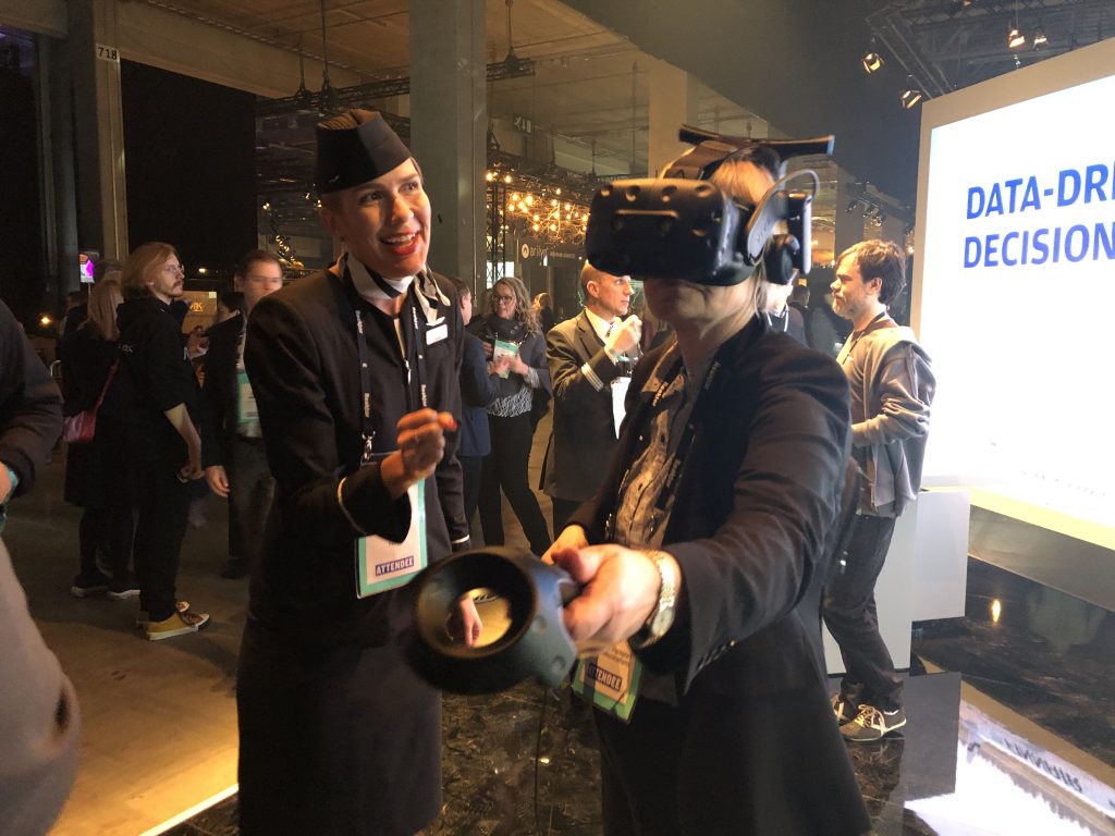 Отлично отработали ВР-тему сотрудники авиакомпании Finnair. Каждому гостю они предлагали надеть Vive Pro c беспроводным модулем (заодно позволяя протестировать это редкое оборудование) и включали приложение для тренировок обслуживающего персонала аэропортов. Хорошую графику и быстродействие лично мне подпортила топорность выполняемых действий и слабая физика. Но это функциональный кейс, который можно прямо сейчас пускать в корпоративные образовательные центры, за такое можно многое простить.