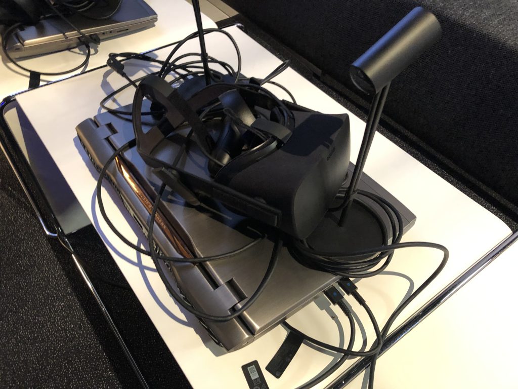 За спиной у нас в это время лежали два ноутбука с комплектами Oculus Rift. С ними гости погружаются в симуляции Nokia для отработки профессиональных навыков. Симуляции, при минимальной эстетической составляющей, функциональны настолько, насколько это нужно. Я однако думаю, что в них не хватает реалистичности, деталей, которые сильнее погружали бы в процесс и заставляли лучше схватывать тему.