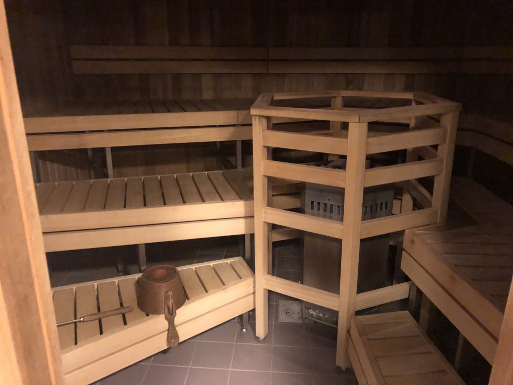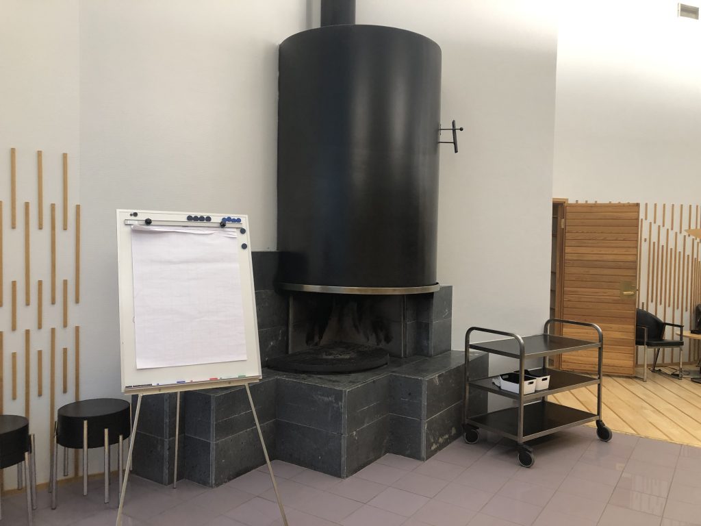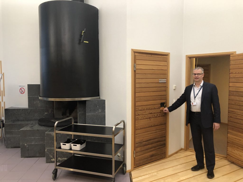 И ещё немного о человечном подходе в бизнесе. Прямо в переговорной комнате, где проводятся фуршеты и неформальные презентации у огромного, как это принято в Финляндии, окна, прямо здесь рядом с доской для вычерчивания бизнес-схем сделана сауна. Да, она работает, она большая, туда можно ходить — не всем и не в любое время, но можно. Почему-то мне кажется, что доступ к какой-нибудь сауне есть у каждого в этом здании.