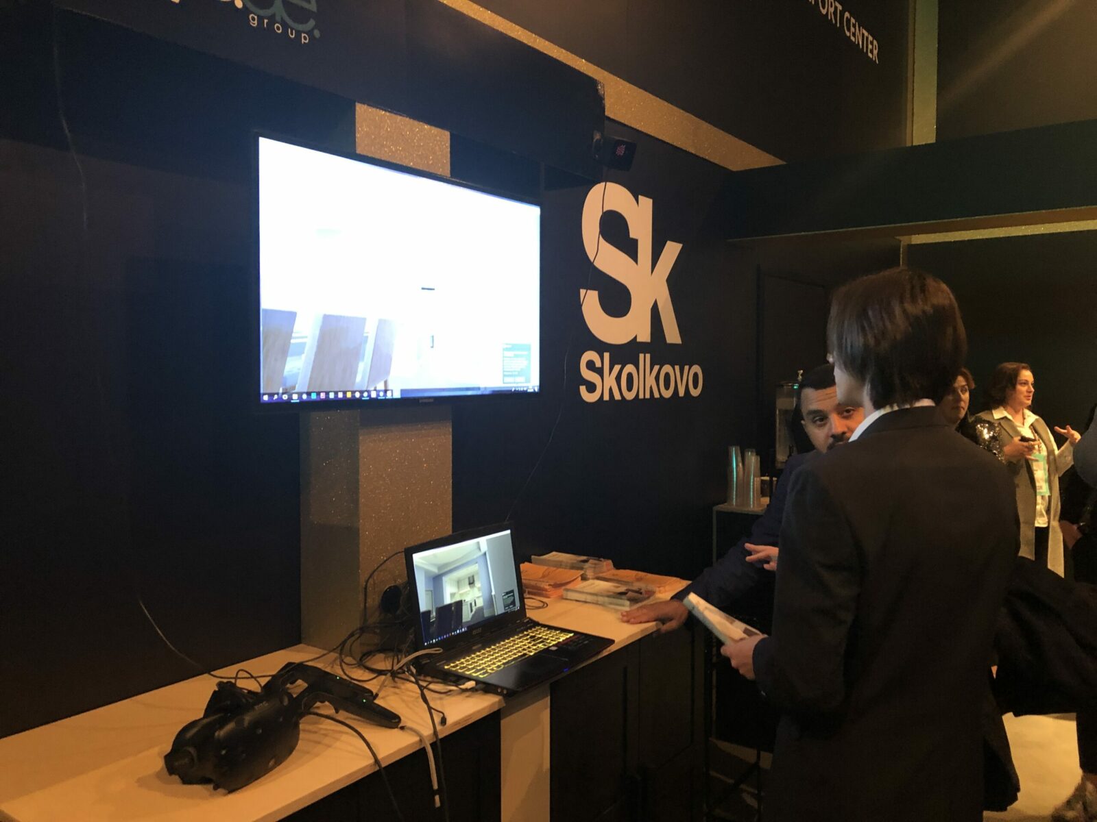 На российских стендах я нашёл и виртуальную реальность. Московская студия интерактивных проектов YODE Group привезла проект создания виртуальных симуляций продаваемой недвижимости. Разработчики сами делают модель объекта, включая такие тонкости, как приборы на столах, которые можно поднять и покрутить в воздухе.