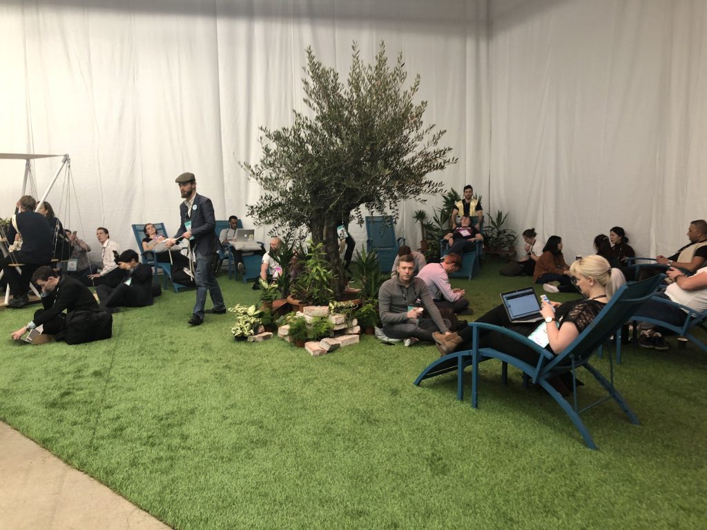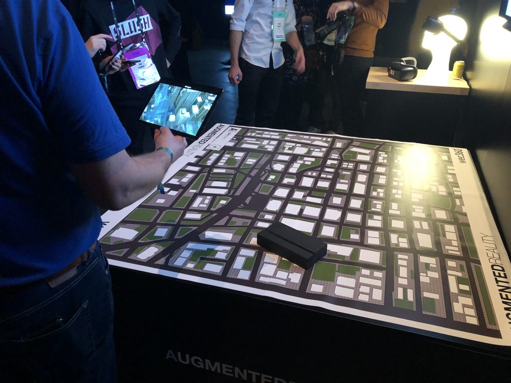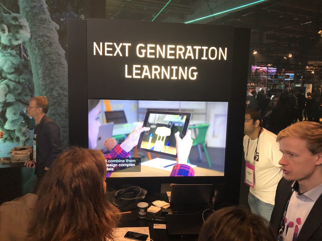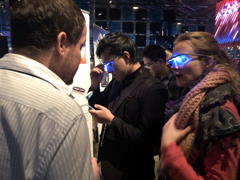 Facebook сделала статусный стенд для платформы дополненной реальности Spark AR. Суда по отношению размера стенда к количеству реальных демонстраций, это скорее способ рассказать о том, что такая платформа вообще существует. С другой стороны, это Facebook с сотнями миллионов активных пользователей, так что частые демонстрации могут и не понадобиться. Такой же подход наблюдался на стендах других крупных компаний, считающих нужным просто появиться.
