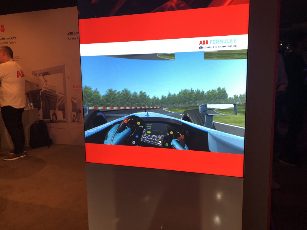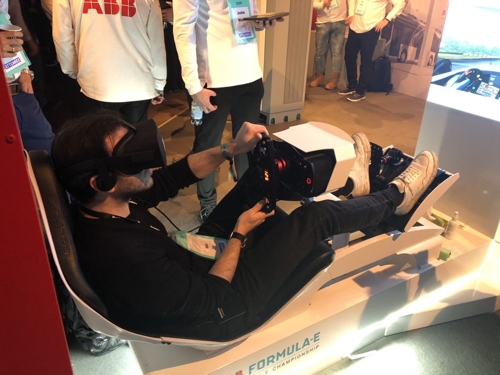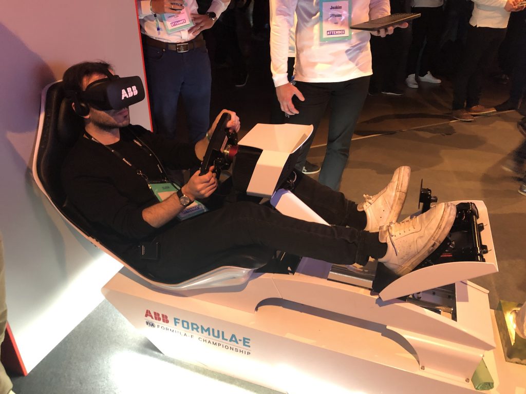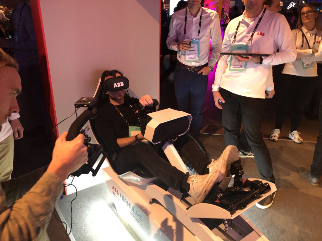 В 2018 году транснациональная корпорация ABB Group, роботизированные манипуляторы которой мы видели на производстве Nokia, стала титульным партнёром Формулы E, чемпионата мира по гонкам на электромобилях. Формула Е помогает целому ряду компаний оттачивать спектр технологий электрических авто, монетизируя процесс с помощью зрелища. ABB отметила партнёрство созданием симулятора виртуальной реальности, который привезла на Slush. Стенд ожидаемо пользовался успехом — в основном у мужчин.