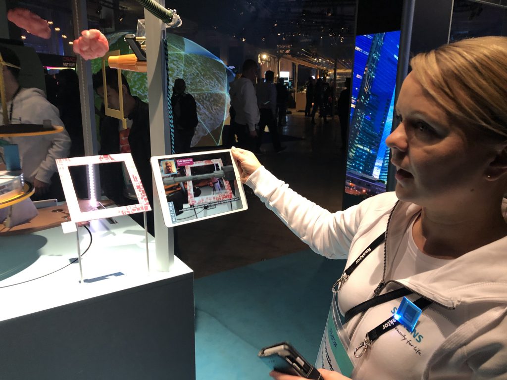 Siemens сделала инсталляцию с дополненной реальностью, в которой на iPad показывала, в каких разных отраслях работает. Например, вокруг стенда летал компьютерный астронавт, ездили поезда. Это хайп с небольшим смыслом, но заставляет улыбнуться. Так огромная корпорация вызывает у людей положительные эмоции.