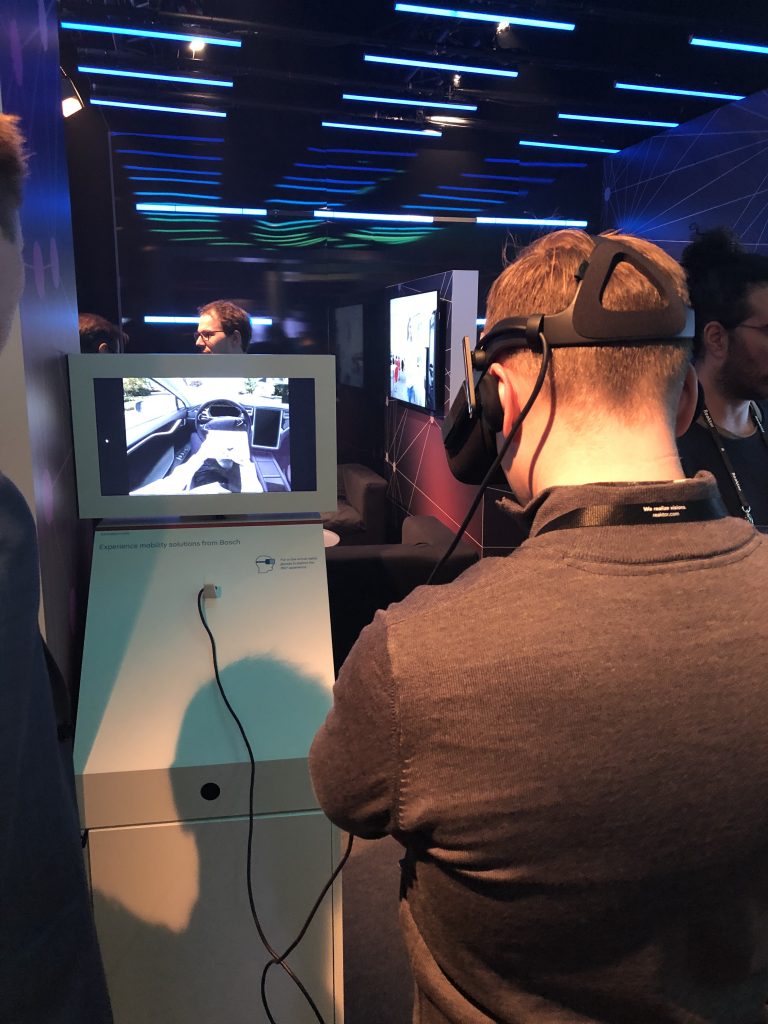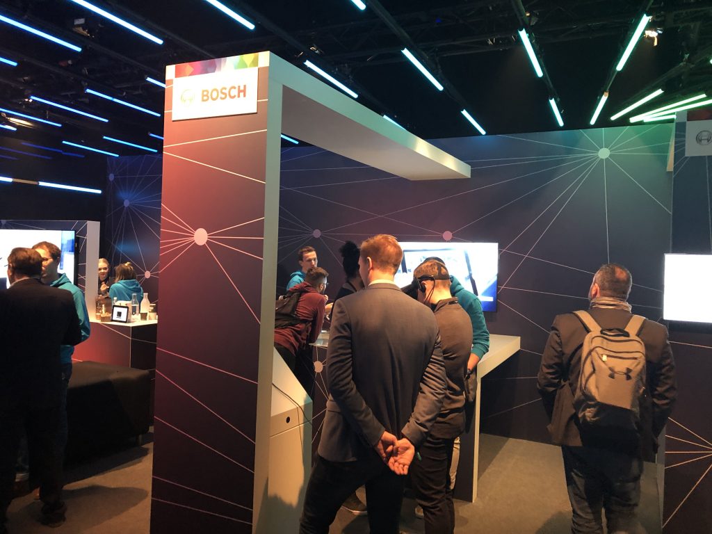 На большом стенде Bosch посетителям предлагали и Oculus Rift, и HoloLens. Демонстрации были нацелены на автоиндустрию: в первом случае человек садился за руль дорогого авто, получая максимально реалистичные (в условиях компьютерного моделирования) ощущения от такого теста, а во втором случае компания показывала платформу разработки дополненной реальности Common Augmented Reality Platform (CAP).