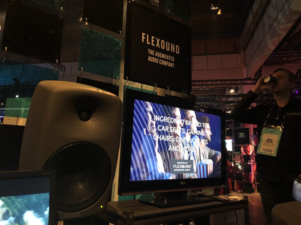 На хайпе вокруг дополненной реальности решила выехать компания Flexound. Под надписью «augmented audio» она продаёт кресла с обратной связью, моторы которых сообщают зрителю фильма физические ощущения на основе звуковых эффектов. Звук в качестве базы для отдачи означает, что система совместима с любым фильмом. Ощущения интересные, как будто в кресле есть с десяток маленьких направленных сабвуферов.