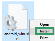 Загрузите драйвер с Oculus.com. Когда загрузка закончится, распакуйте zip-файл. Теперь нажмите правую кнопку мыши на android_winusb.inf и нажмите «Установить».