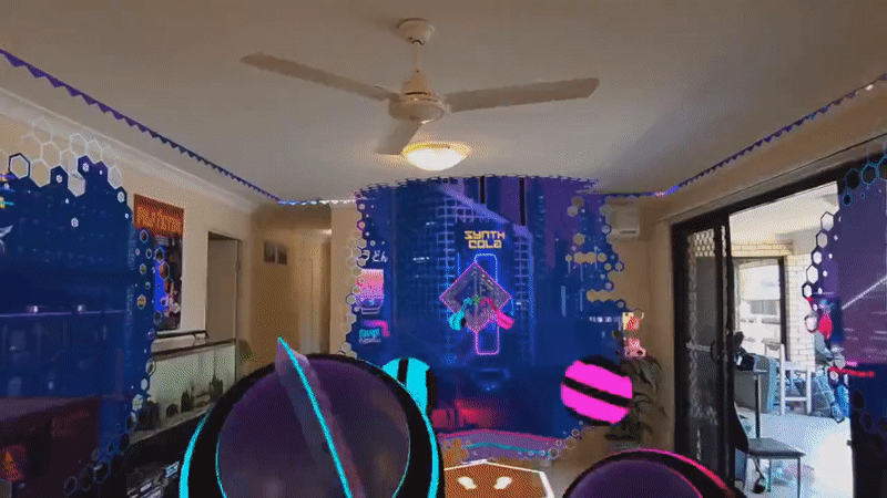 В новом режиме Synth Riders в прямом смысле пробивает стену и сквозь дыру вносит футуристический киберпанковский сеттинг в настоящую комнату игрока. Это не просто удивляет, но и даёт отличный способ играть, не беспокоясь о том, что заденешь что-нибудь или кого-нибудь, неосторожно оказавшегося рядом.