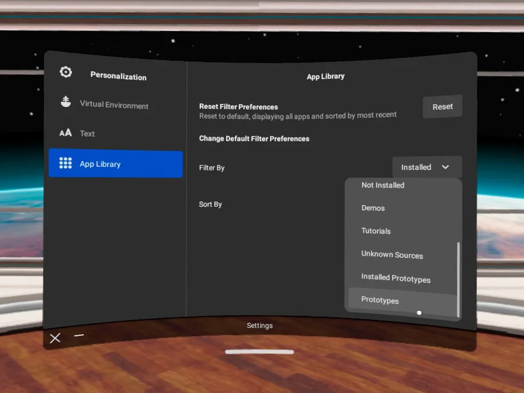 Как навсегда настроить фильтр и сортировку библиотеки приложений в Quest