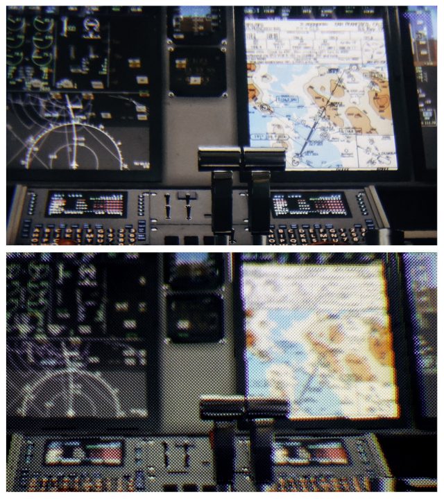 Вот пример от Varjo, который показывает разницу между картинкой с наложением от микродисплея и без него: