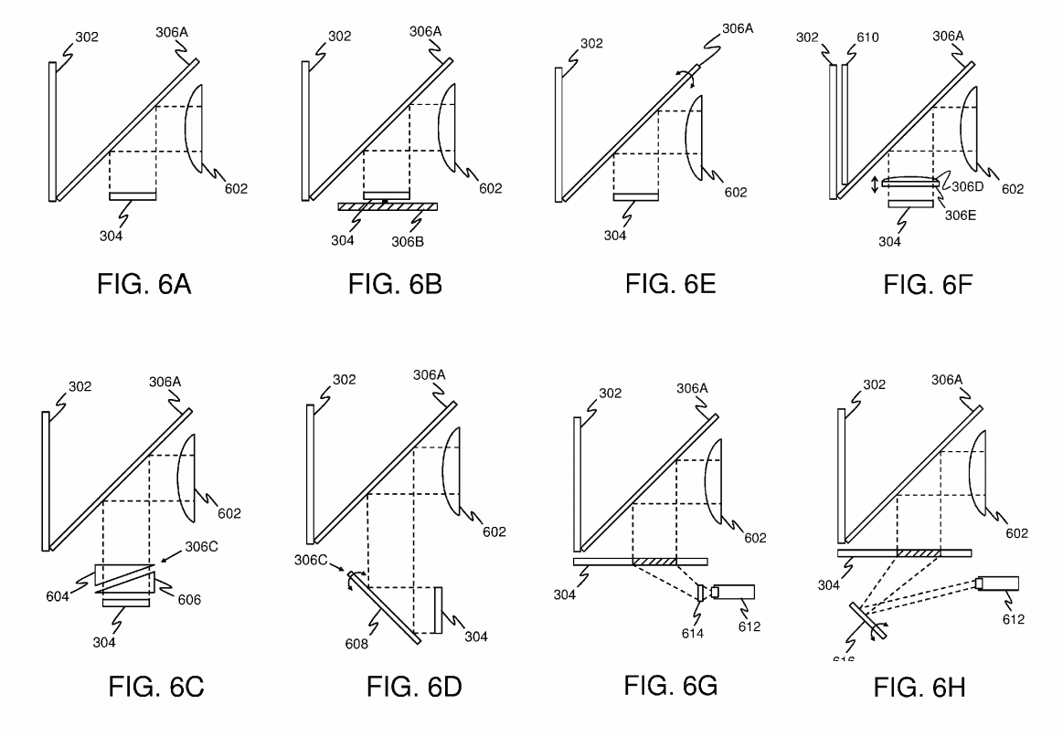 Разумный вопрос: достаточно ли быстро и точно движется оптика в компактной конструкции очков, чтобы не отставать от движений глаз? Ответ можно найти в ключевом патенте компании, «Устройство дисплея и метод отображения с помощью фокусного и контекстного дисплеев» («Display Apparatus and Method of Displaying Using Focus and Context Displays»), где описаны механизмы, ответственные за работу системы.
