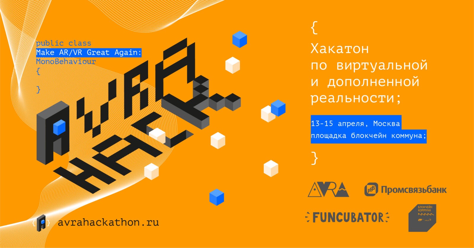13-15 апреля в Москве пройдёт AVRA Hack, хакатон по созданию проектов дополненной и виртуальной реальности. Мероприятие организовала Ассоциация дополненной и виртуальной реальности при поддержке FunCubator, Промсвязьбанк и ВЭБ-Инновации.