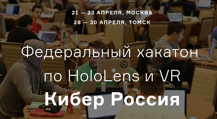В России открывается федеральная серия хакатонов по смешанной и виртуальной реальности «КиберРоссия». Первый хакатон будет проходить 21-23 в Москве, а второй намечен на 28-30 апреля и будет организован в Томске. Победители могут получить до ₽2,5 миллионов инвестиций на развитие проектов.