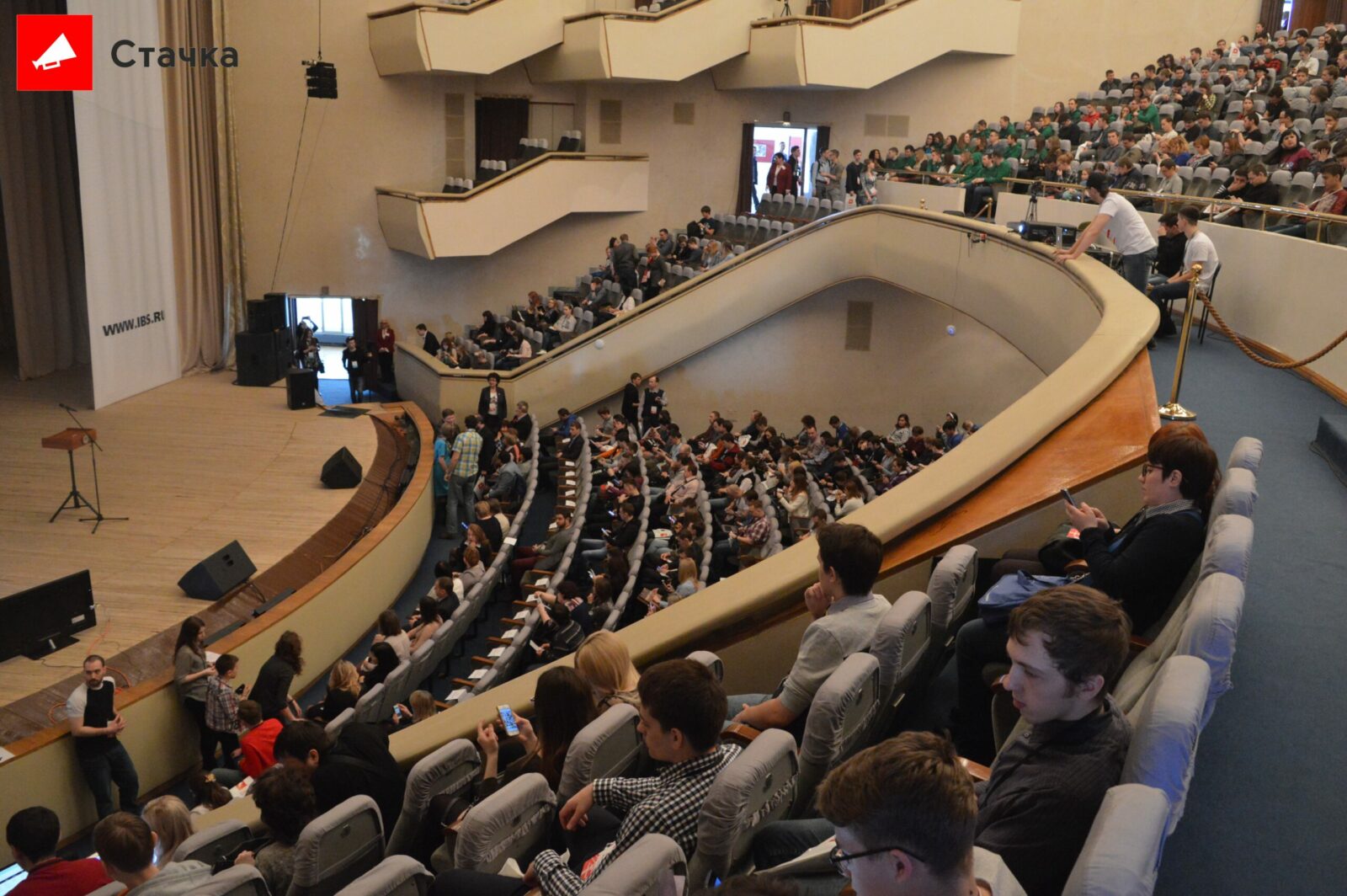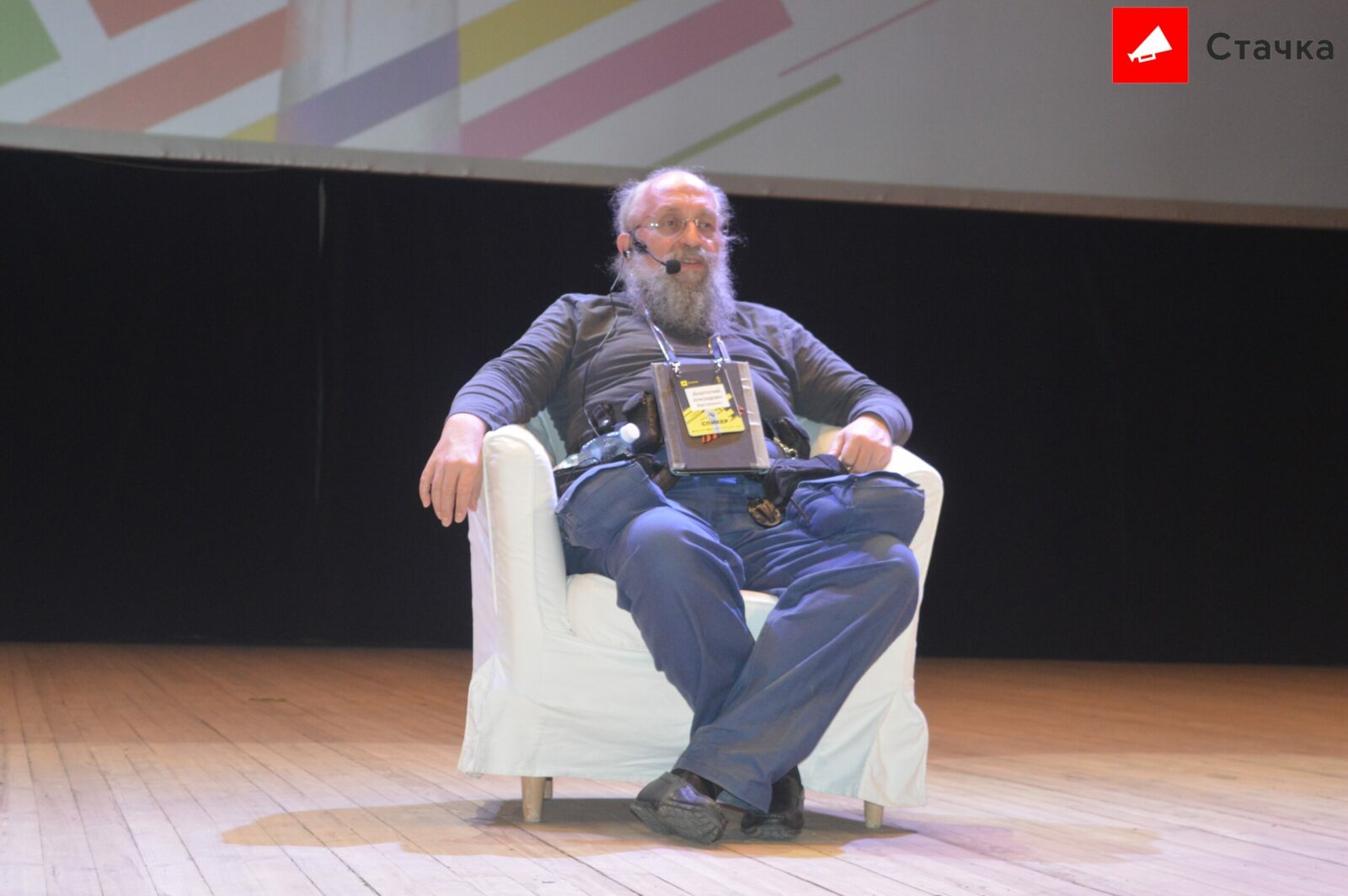 Между выступлениями участники конференции знакомились с продуктами и услугами ИТ-компаний, узнавали о вакансиях, стажировках, фотографировались и общались с экспертами и специальным гостем Стачки Анатолием Вассерманом. Знаменитый интеллектуал рассказал о будущем России в глобальной конъюнктуре через 30 лет.