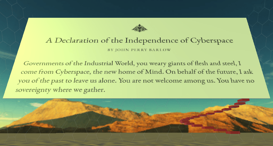 Мы — поклонники виртуальной реальности, — рассказывает главный разработчик проекта Эстебан Ордано (Esteban Ordano). — Мы считаем, что это пространство, в котором открытый протокол может конкурировать с другими типами опыта (High Fidelity, Facebook Spaces). В частности, мы думаем, что такой протокол будет развиваться из гражданского сообщества с сопротивлением цензуре, благодаря свободе использования, исследования и развития. Мы используем блокчейн в качестве способа демократизации руководящих ролей, того, кто чем владеет, в противовес корпоративной власти над всем виртуальным миром.