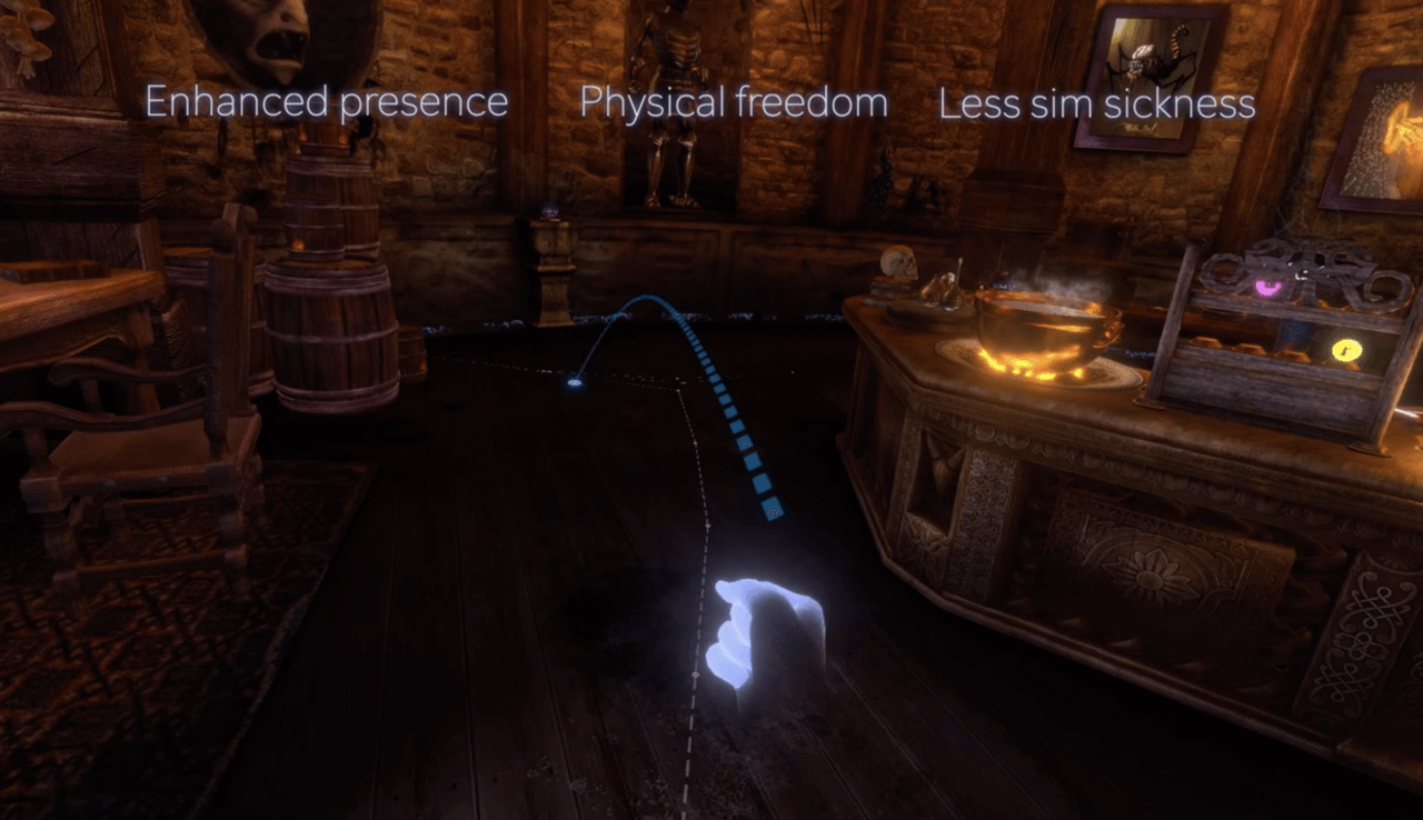 Но если дело касается привычных игровых действий, вроде стрельбы и перемещения, их трудно выполнить с помощью одних ручных жестов. Aldin, студия-разработчик игры «Waltz of the Wizard», обновила метод перемещения аватара в виртуальной реальности под названием Telepath. И теперь он подходит для работы без контроллера.