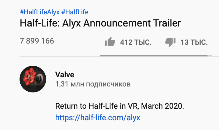 На YouTube есть ролики о виртуальной реальности с десятками миллионов просмотры и вирусные феномены, вроде Beat Saber. Но в первом случае речь идёт о развлечении, а не интересен к конкретному продукту, а во втором — о геймплее уже вышедшей игры, а не о единственном официальном трейлере.