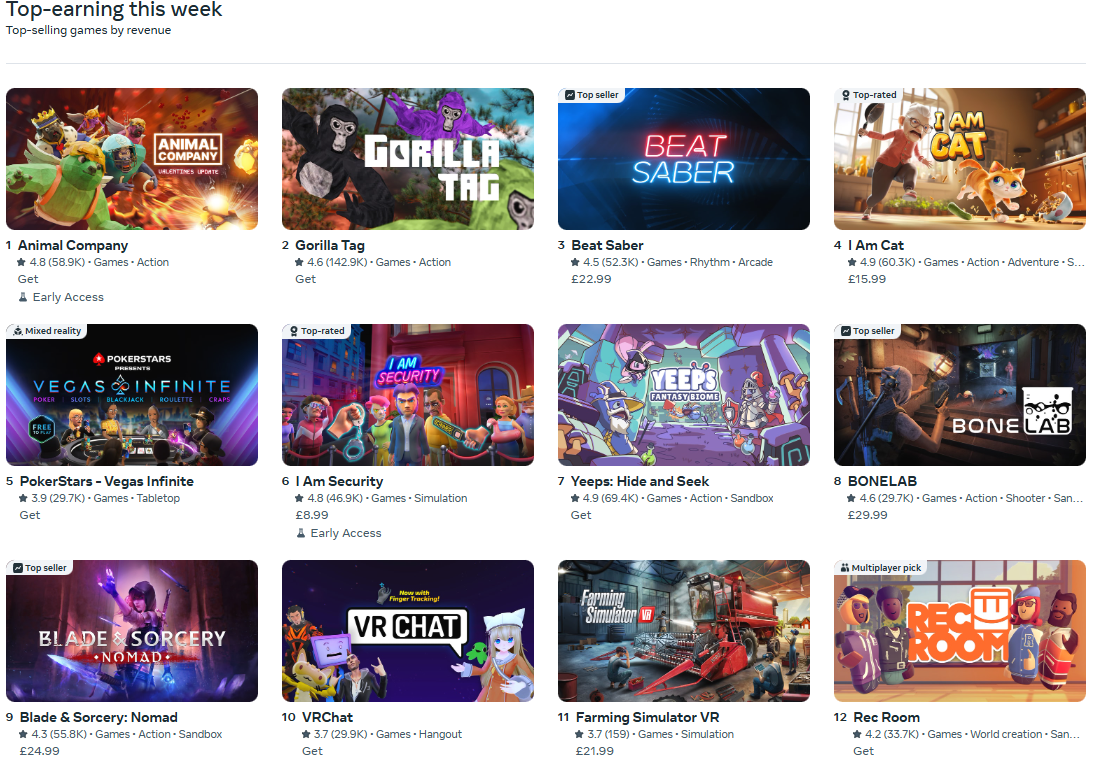 Animal Company вышла в лидеры Horizon Store по выручке, обогнав Gorilla Tag и Beat Saber