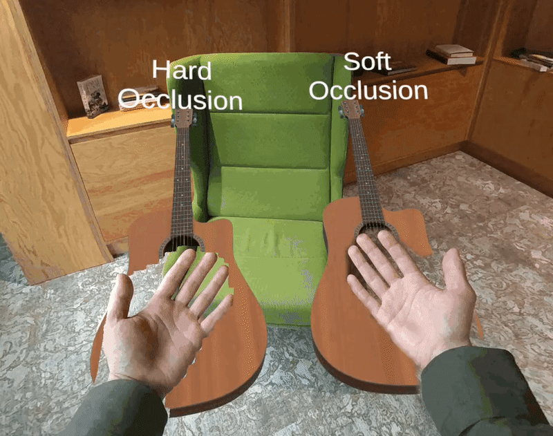 Разработчики уже могут использовать динамическую окклюзию для рук с помощью отслеживания рук, но делают это немногие, потому что сетка обрезается на запястье, и остальная часть руки остаётся без эффекта.