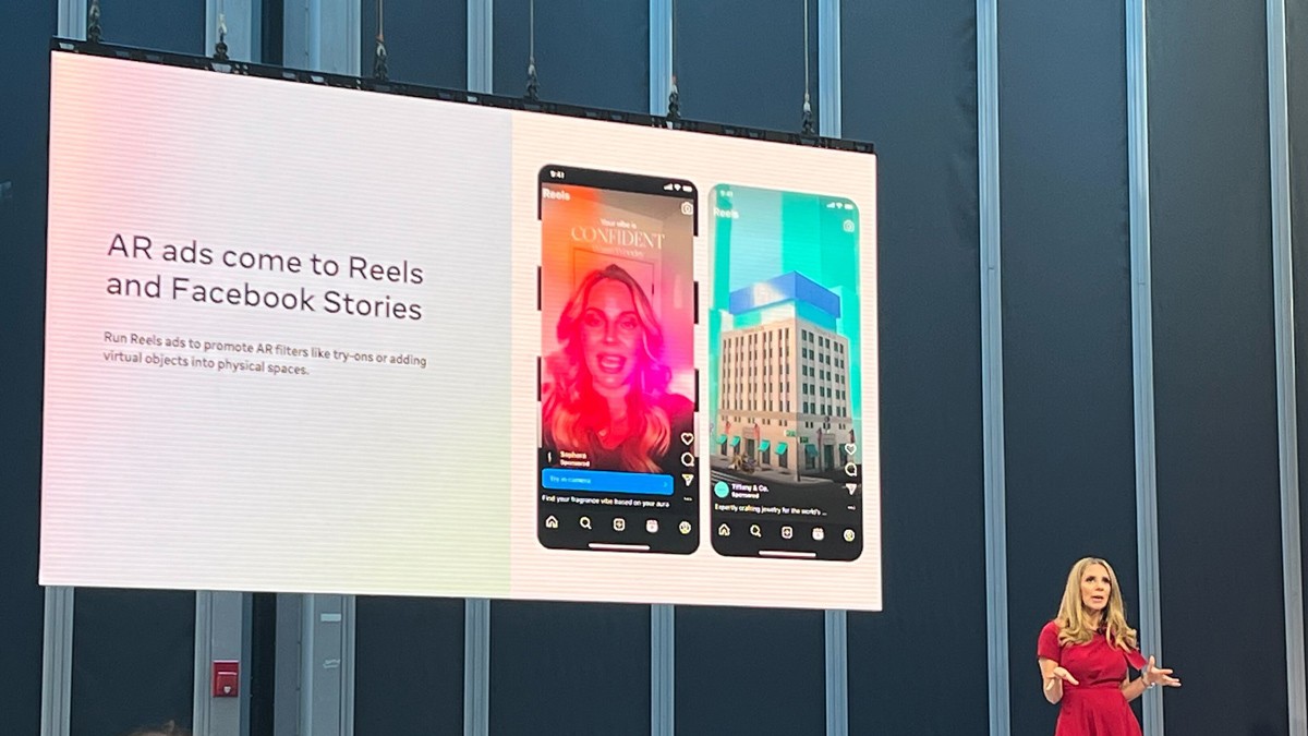 На презентации рекламодателям, своему основному источнику дохода, на сцене конференции NewFronts Meta* анонсировала дополненную реальность в Reels для Instagram* и Stories для Facebook*. Компания уже предлагала такой формат в лентах своих соцсетей и в Stories, а теперь расширяет соответствующие возможности, бравируя статистикой: общая запоминаемость рекламы в демографической группе 18–24 года составила 87%, что намного превосходит рекламу без иммерсива.