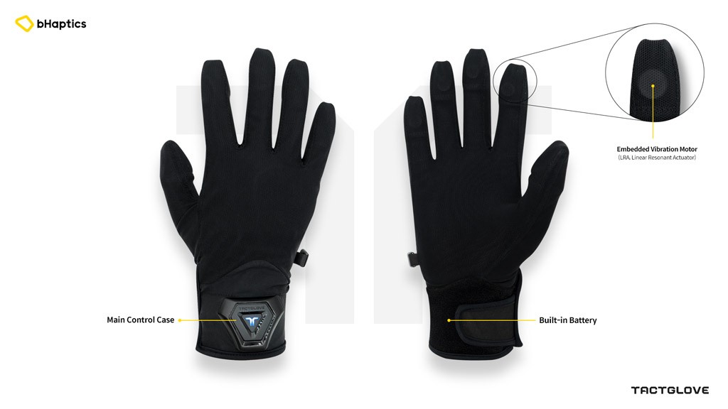 В каждой перчатке по пять линейно-резонансных актуаторов на кончиках пальцев. Они обеспечивают ощущение прикосновений к виртуальным объектам в сочетании с отслеживанием рук в очках, таких как Quest 2 и HoloLens 2. Перчатки выпустят в трёх размерах и с моющейся подкладкой.