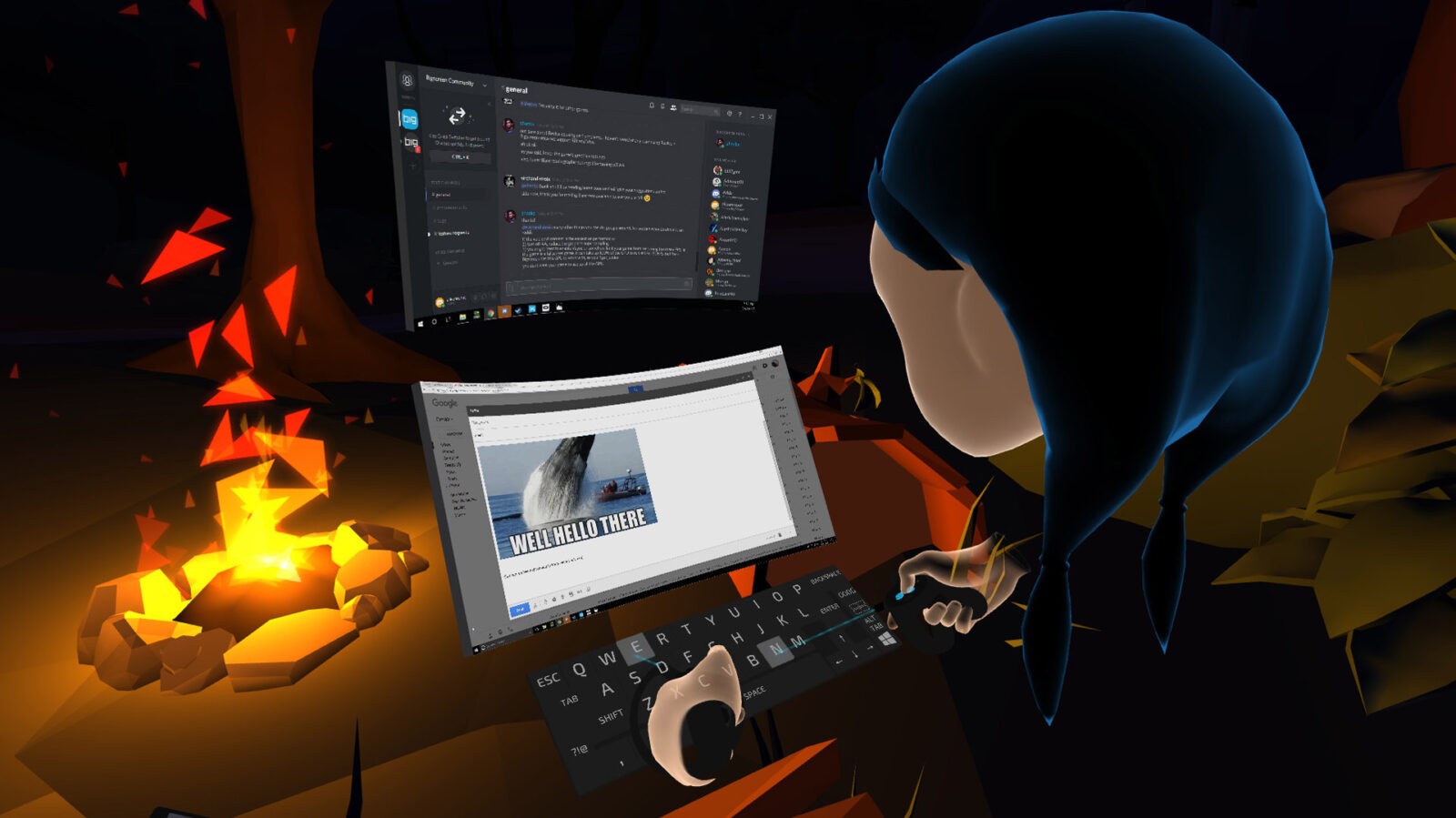 Bigscreen предлагает как многопользовательские пространства для просмотра фильмов, так и игры для четверых пользователей, а также функционирует как виртуальный рабочий стол, проецируя ваш экран, чтобы вы могли делать всё, что обычно делали бы на мониторе.