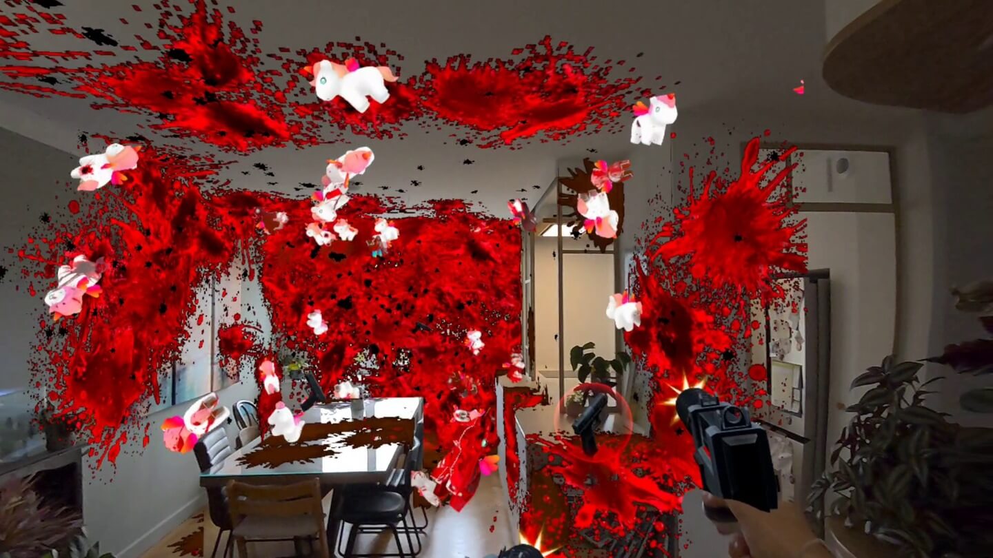 Вряд ли мы могли предполагать, что одной из самых жестоких и кровавых игр смешанной реальности станет проект про маленьких единорогов. Для погружения в небольшой бессюжетный мир BLUD вы должны ненавидеть этих сказочных существ и иметь Quest 3 или 3S для режима смешанной реальности.