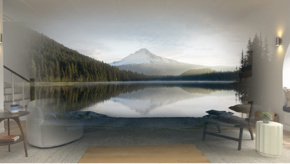 В операционной системе visionOS есть набор иммерсивных фонов, которые позволяют владельцам Vision Pro визуально перемещаться в различные места. Такой уровень детализации трудно реализовать с помощью камер без помощи компьютерной графики. Существует мнение, что некоторые из этих кадров сняты с помощью камеры RED 8K, но Apple не раскрывает карты. Большая часть сред не предназначена для просмотра вблизи, а большая часть каждой сцены неподвижна. Они являются результатом постобработки.