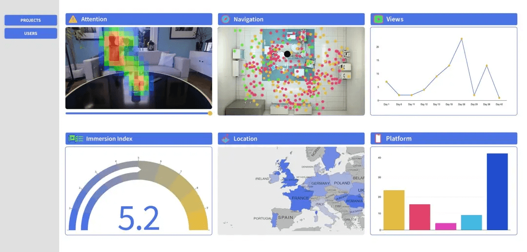 Решение CORTEXR анализирует поведение пользователя в трёхмерном пространстве ради данных о внимании, навигации и вовлечении. Зависимости от платформы нет, поэтому авторы приложений могут анализировать проекты на любом движке, устройстве и с любым типом контента с объединением данных с разных платформ по стандартизированным показателям.