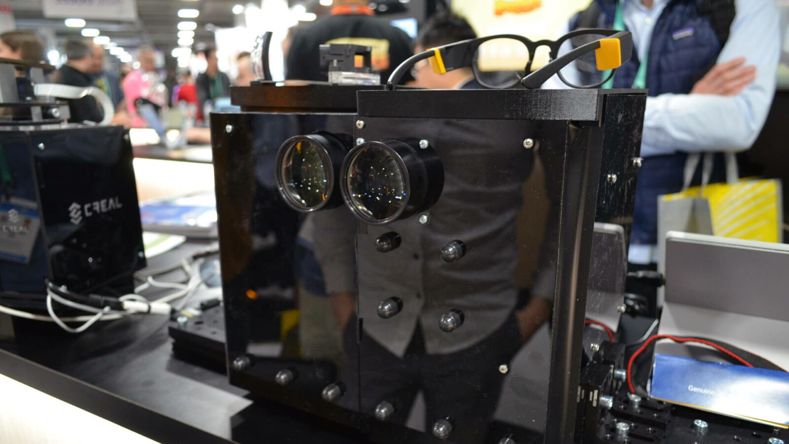 CREAL создаёт дисплеи светового поля для очков дополненной и виртуальной реальности. Новинка, как и аналоги, обещает сделать виртуальные образы более естественными, точнее моделируя то, как свет реального мира взаимодействует с человеческим глазом. На CES посетители стенда компании смогли наблюдать прогресс, достигнутый компанией в уменьшении огромного прототипа до миниатюрных размеров.