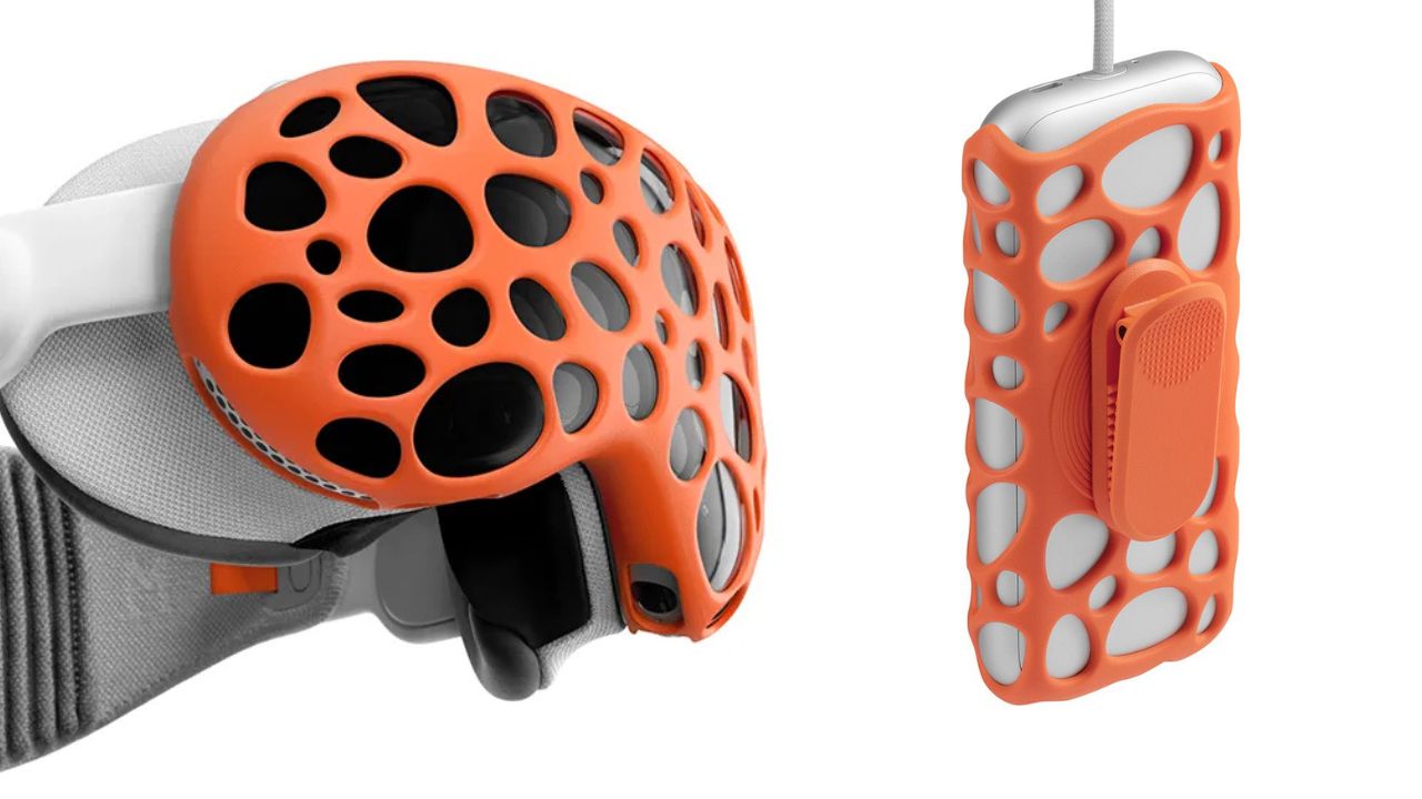 Компания dbrand открыла продажи ограниченной серии «трипофобных» защитных чехлов для Apple Vision Pro и их батарей. Примерно год назад, через несколько недель после запуска продаж Vision Pro, напечатанный на 3D-принтере прототип представил дизайнер Кайл Гудрич. Он изучал проблему создания аксессуара для устройства, покрытого датчиками. В итоге отверстия в чехле совпадают с камерами и датчиками, поэтому очки работают без помех.