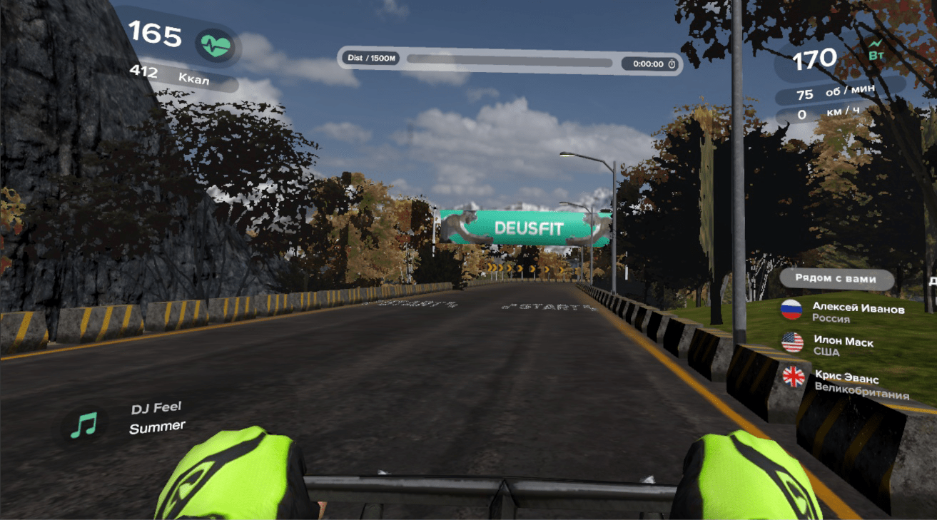 В комплекте Immersive Cycling датчик отслеживания показателей и специальное программное обеспечение. Приложения для DEUS FIT разрабатывает внутренняя студия DEUS в сотрудничестве с профессиональными спортсменами. Их советы помогают оптимизировать тренировочный процесс.