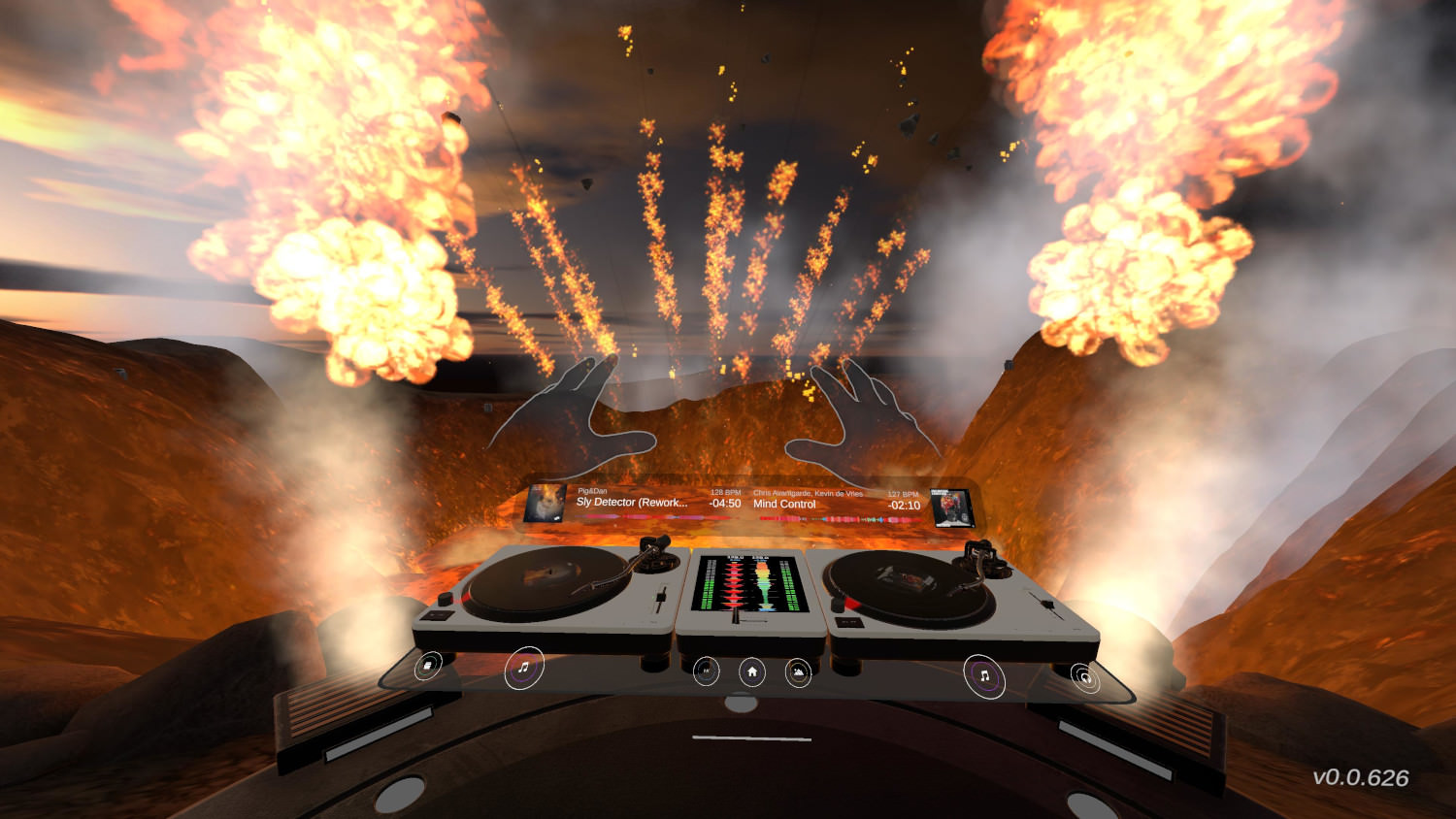 Приложение приветствует вас в режиме смешанной реальности диджейской декой, которую можно перемещать вокруг и легко освоить новичку. Музыкальные дорожки стоят сбоку, как пластинки на полке. Пользователь берёт их рукой или контроллером и ставит на вертушки. На виртуальном виниле можно делать скретчи, по нему можно перемещать иглу, чтобы быстро перематывать трек. Для переходов есть кроссфейдер. Из забавных нюансов, поднятие рук провоцирует маленькое световое шоу, а концерты можно вести в разных местах, таких как клуб, воздушный шар или космос.