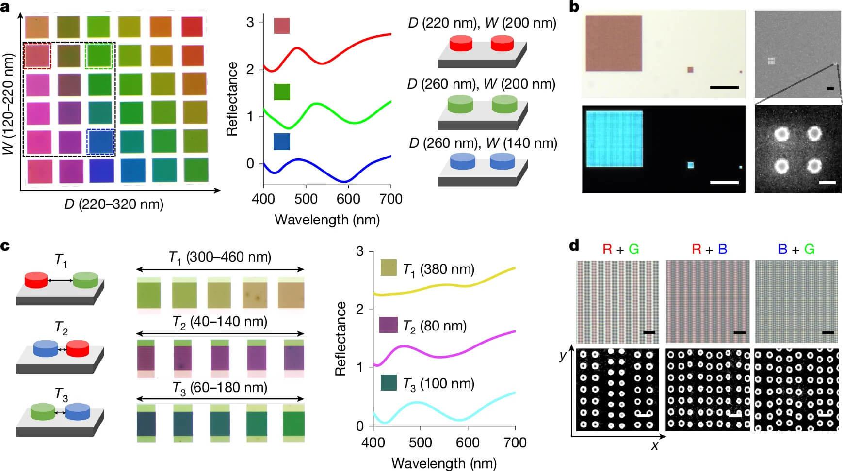 Каждый метапиксель изготовлен из нанодисков триоксида вольфрама, которые при электрическом воздействии претерпевают обратимый переход из диэлектрика в металл. Этот процесс динамически изменяет показатель преломления и оптическое поглощение материала, что позволяет контролировать яркость и цветовой контраст в наномасштабе.