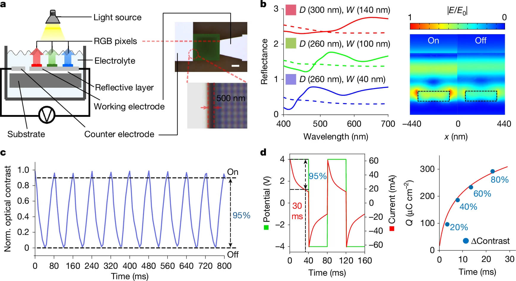 В то время как традиционная электронная бумага с трудом достигает разрешения, необходимого для отрисовки реалистичных изображений на расстоянии вытянутой руки, её новый вид решает проблему вводом электрически настраиваемых «метапикселей» шириной около 560 нанометров.