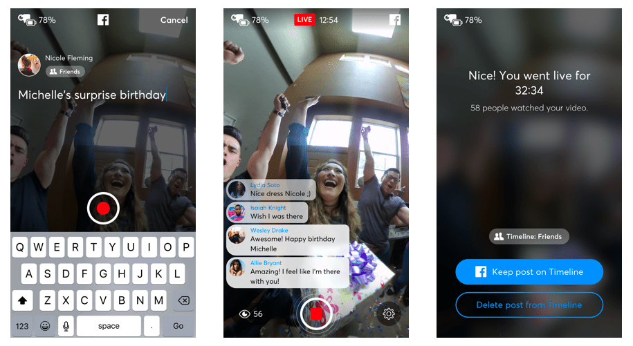 Прямые эфиры в сферическом формате не являются абсолютно новыми для Facebook: ранее они тестировалась на избранных страницах. Кроме того их с недавних пор могут вести пользователи Gear VR. Но лишь сейчас доступ к ним имеют все люди, группы и страницы. Для съёмки подойдут камеры потребительского класса Samsung Gear 360 2017 года, Giroptic IO, Insta360 Nano/Air и ALLie Camera, а также профессиональные Z CAM S1 и Nokia OZO.