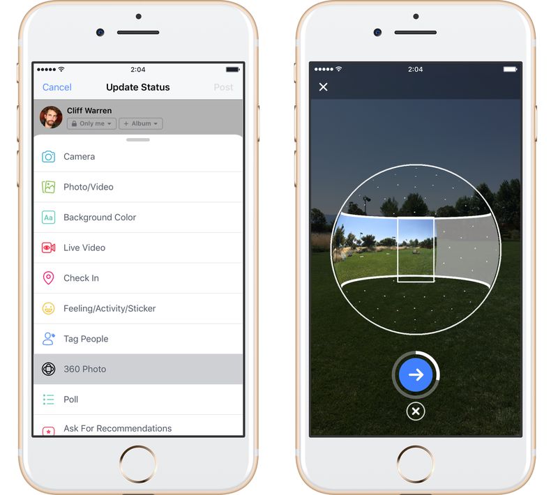 Больше года пользователи приложений Facebook загружают и смотрят фотографии со сферическим обзором, но снимать их было нельзя. С последним обновлением для Android и iOS этот недостаток исправлен, поэтому пользователям социально сети уже не нужны сторонние приложения или камеры.