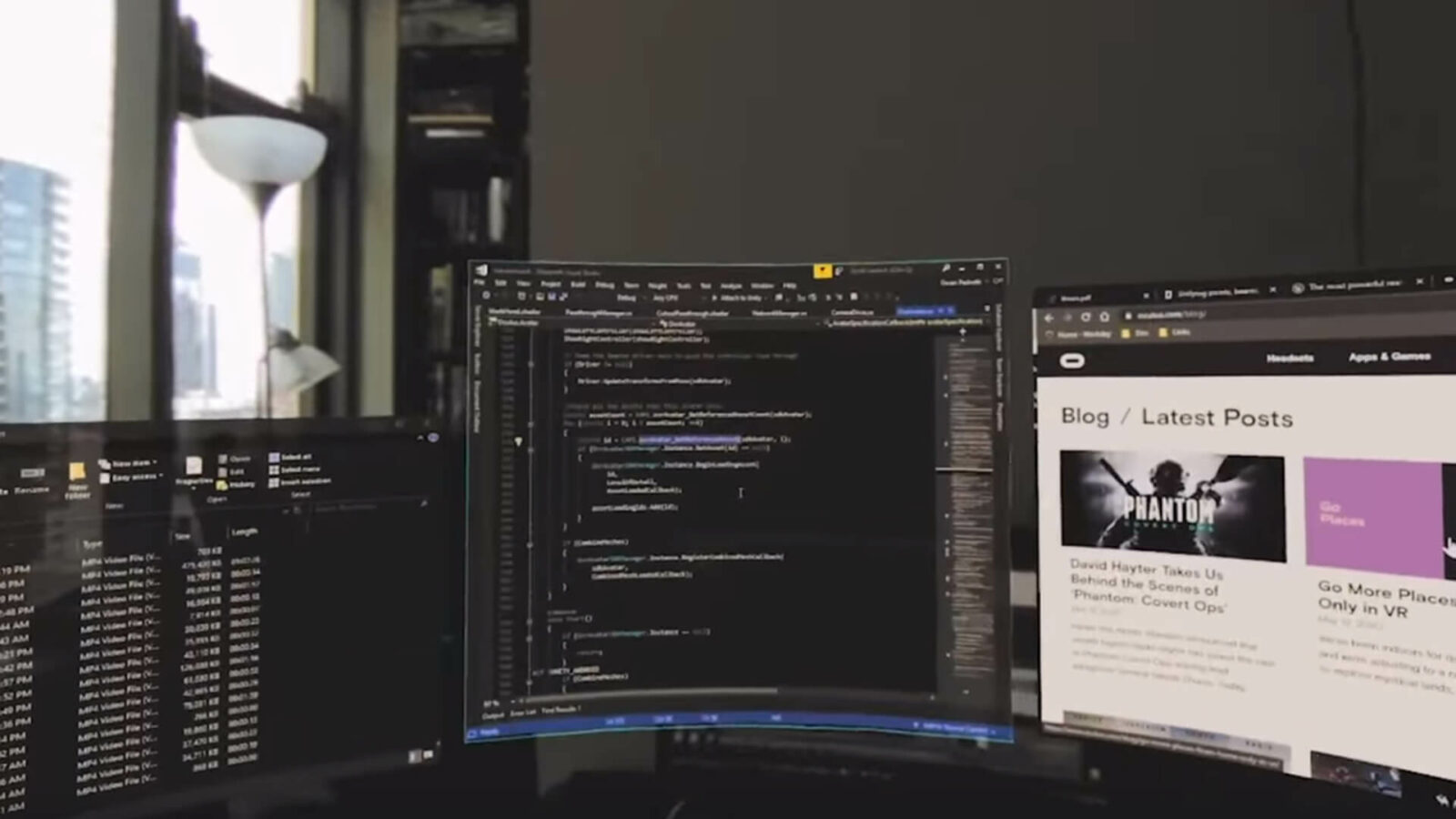 В девятисекундном ролике вы видите человека, который использует отслеживание рук, чтобы разместить вокруг нескольких виртуальных мониторов, и в то же время пользуется реальной клавиатурой, которую очки оцифровывают на лету. Концепция основана на функции сквозного вида Quest под названием Passthrough. Обычно она помогает обезопасить ваше окружение при настройке системы безопасности Guardian, показывая монохромную трансляцию с камер.