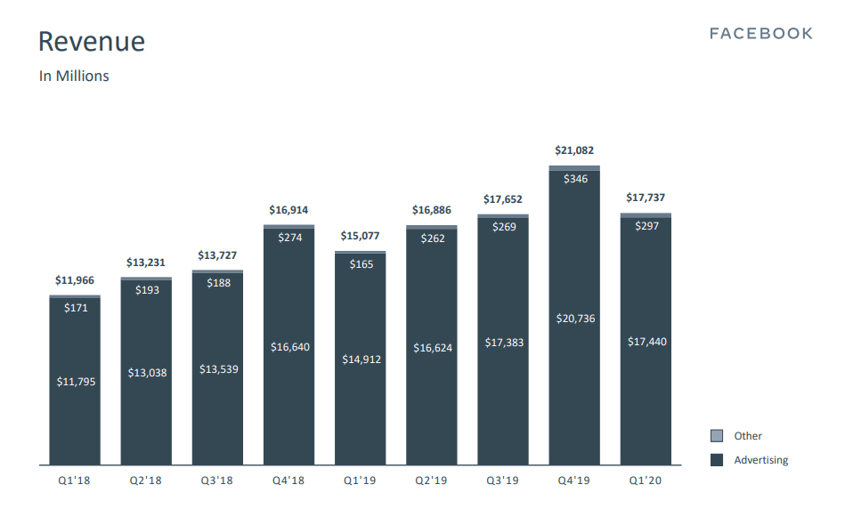 Facebook в финансовом отчёте за первый квартал 2020 года отметила, что продукты Oculus внесли основной вклад в доход не от рекламы, равный $297 миллионам. Абсолютно подавляющую долю дохода компания получает именно от рекламы, но имеет другие его источники, такие как продажа устройств Oculus, программного обеспечения и аксессуаров для них, решения для видеосвязи Portal и многое другое.