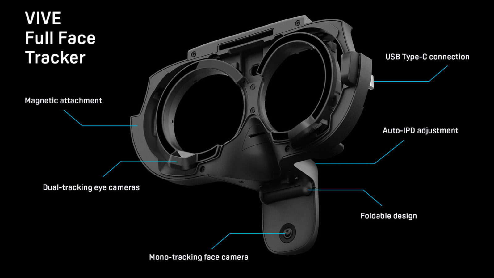 HTC выпустила аксессуар Full Face Tracker для Vive XR Elite. Это модуль, подключаемый к очкам с нижней стороны корпуса с помощью магнита и USB-C. Одной камерой он отслеживает движения рта, а двумя другими следит за глазами. Заказать новинку можно уже сегодня за $200.